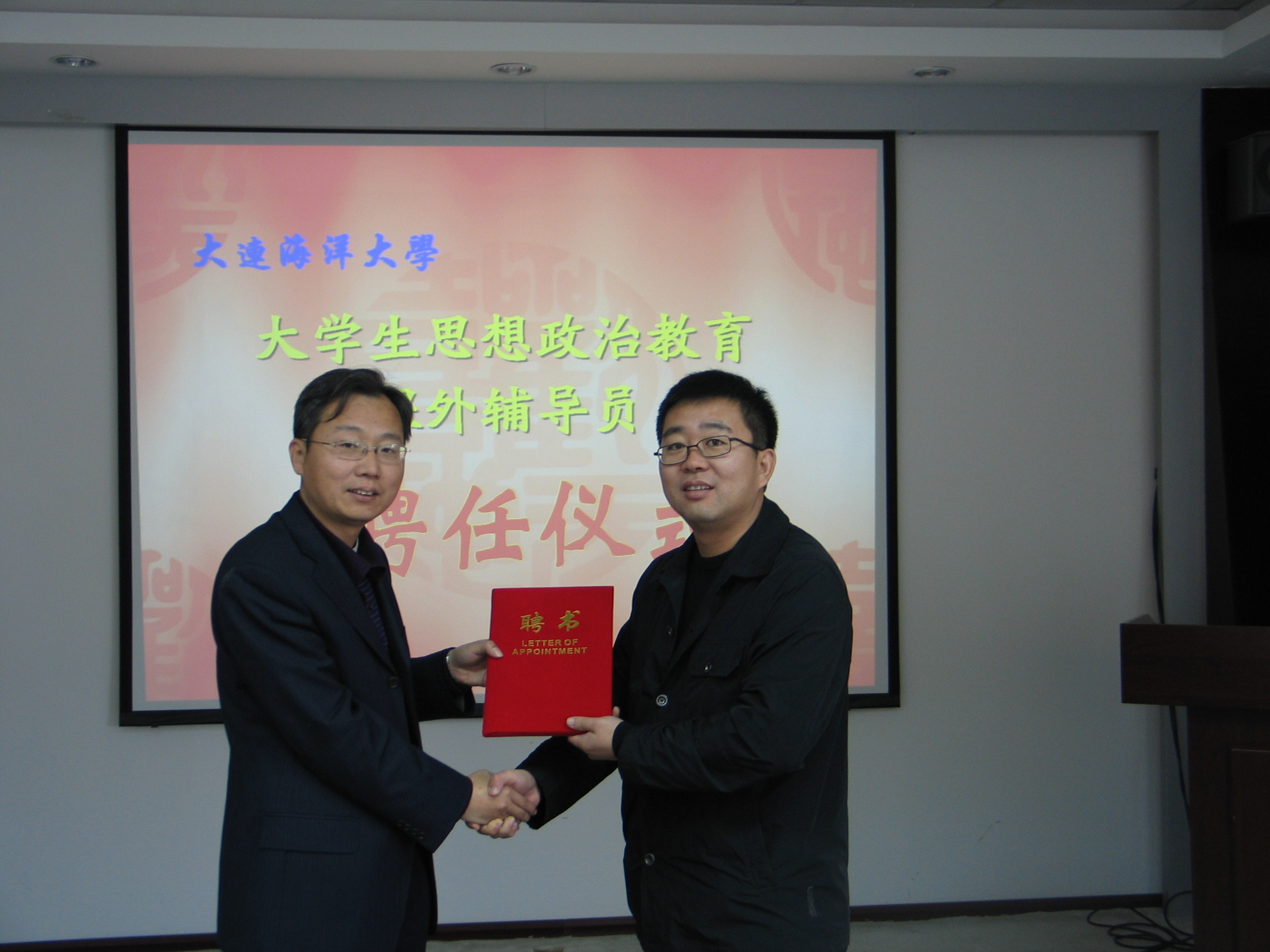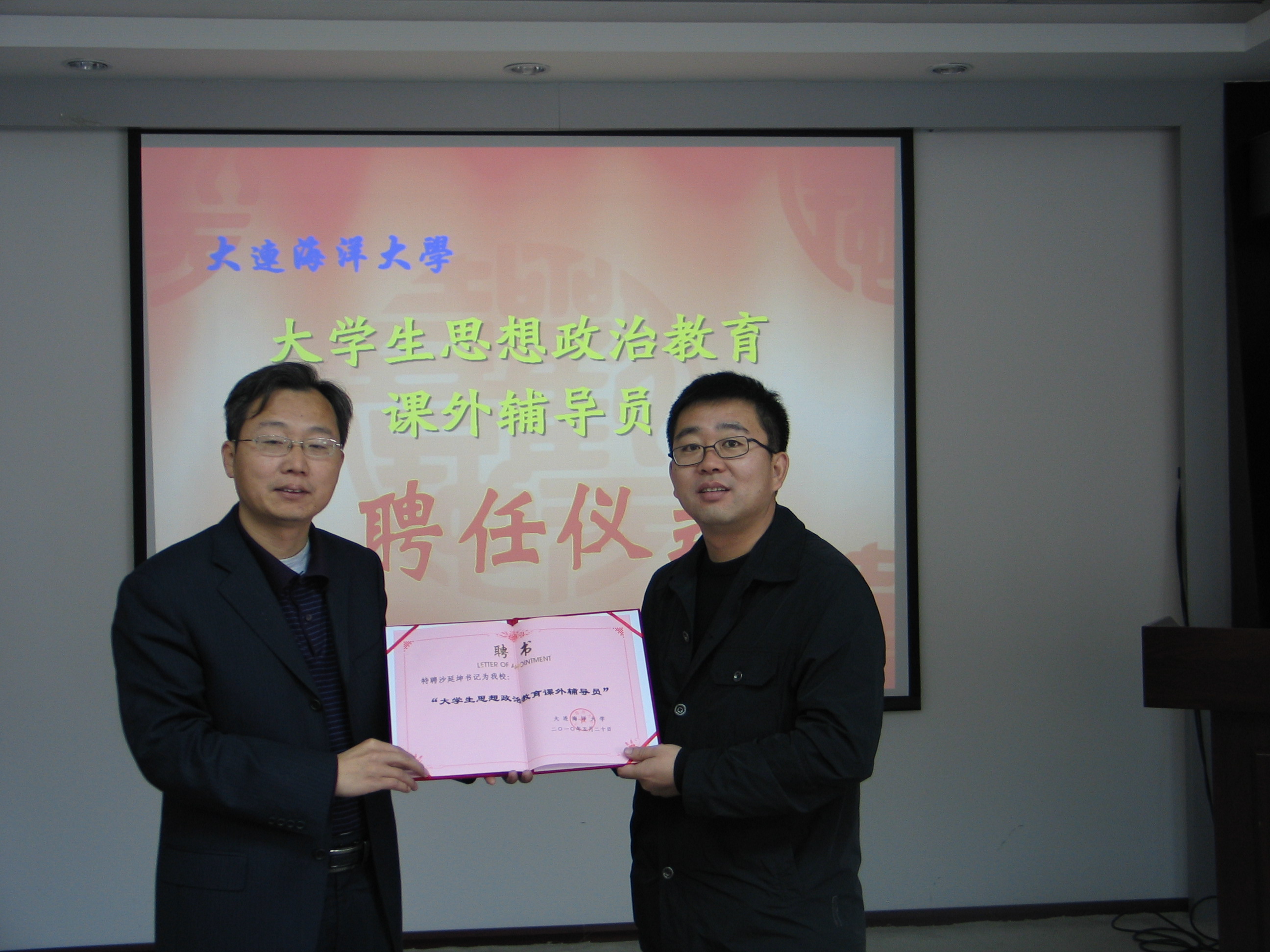 王保良书记讲到,校外指导教师的聘请是改革本科教学模式、人才培养模式的体现,企事业优秀一线指导教师的加入,不仅是为了加强学院与合作单位的合作,更是为了让大学生真正做到理论结合实践,从而成为优秀人才。随后王书记将聘书交到沙延坤书记的手中,沙书记表示学校和基层联合培养是一种新形势,他有决心、有信心和学院一起,培养出一批理论基础扎实,实践能力强的大学生。