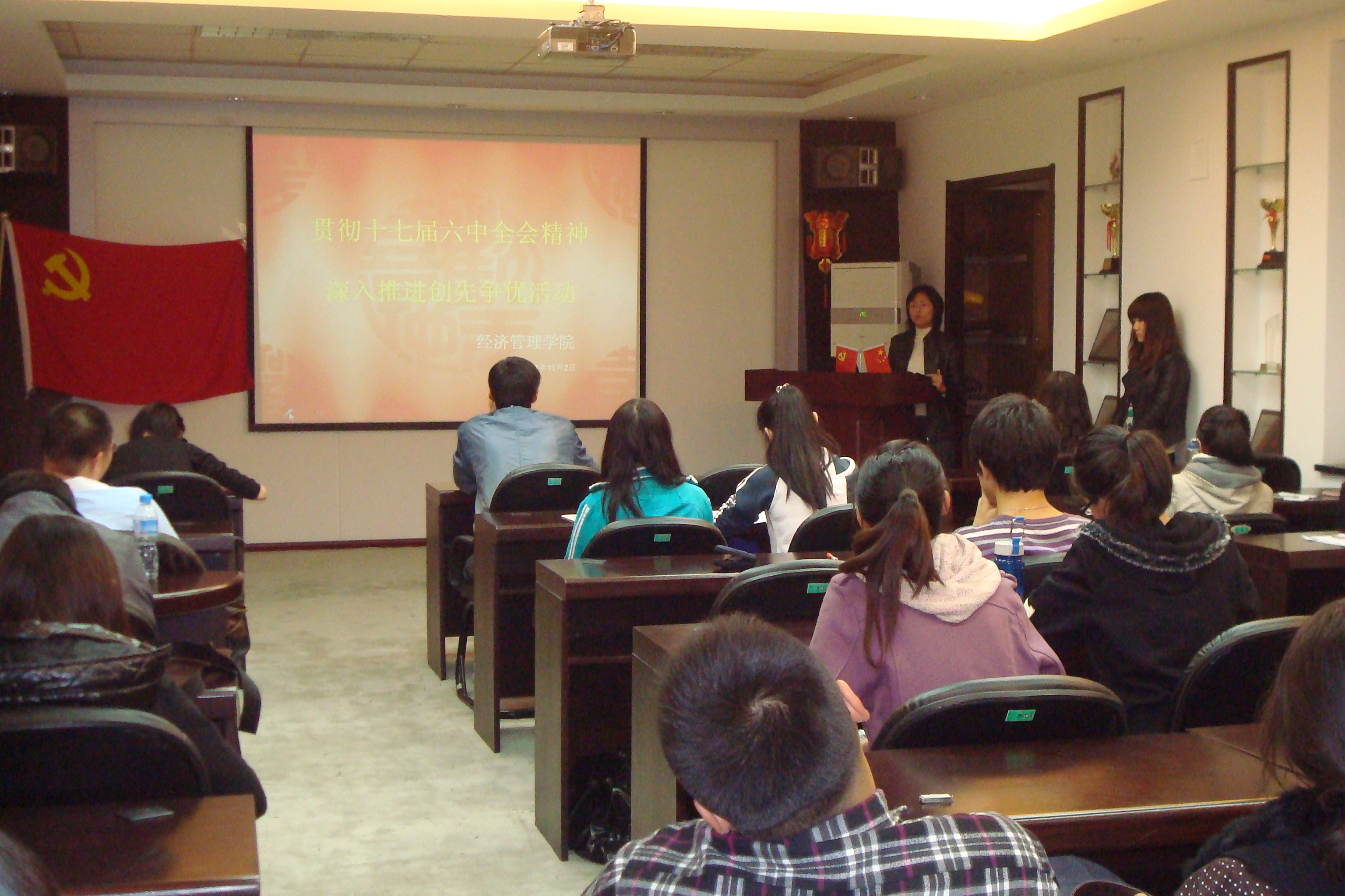 为深入推进创先争优活动,进一步增强学生党员的党员意识和党性观念,提高基层党组织的凝聚力和战斗力,充分发挥学生党员在广大青年学生中的先锋模范作用,11月2日,太阳成集团tyc234cc党总支在经管楼602会议室召开了以“贯彻十七届六中全会精神,深入推进创先争优活动”为主题的全体学生党员会议。学院党总支副书记高雪梅、团委书记刘富江出席会议。