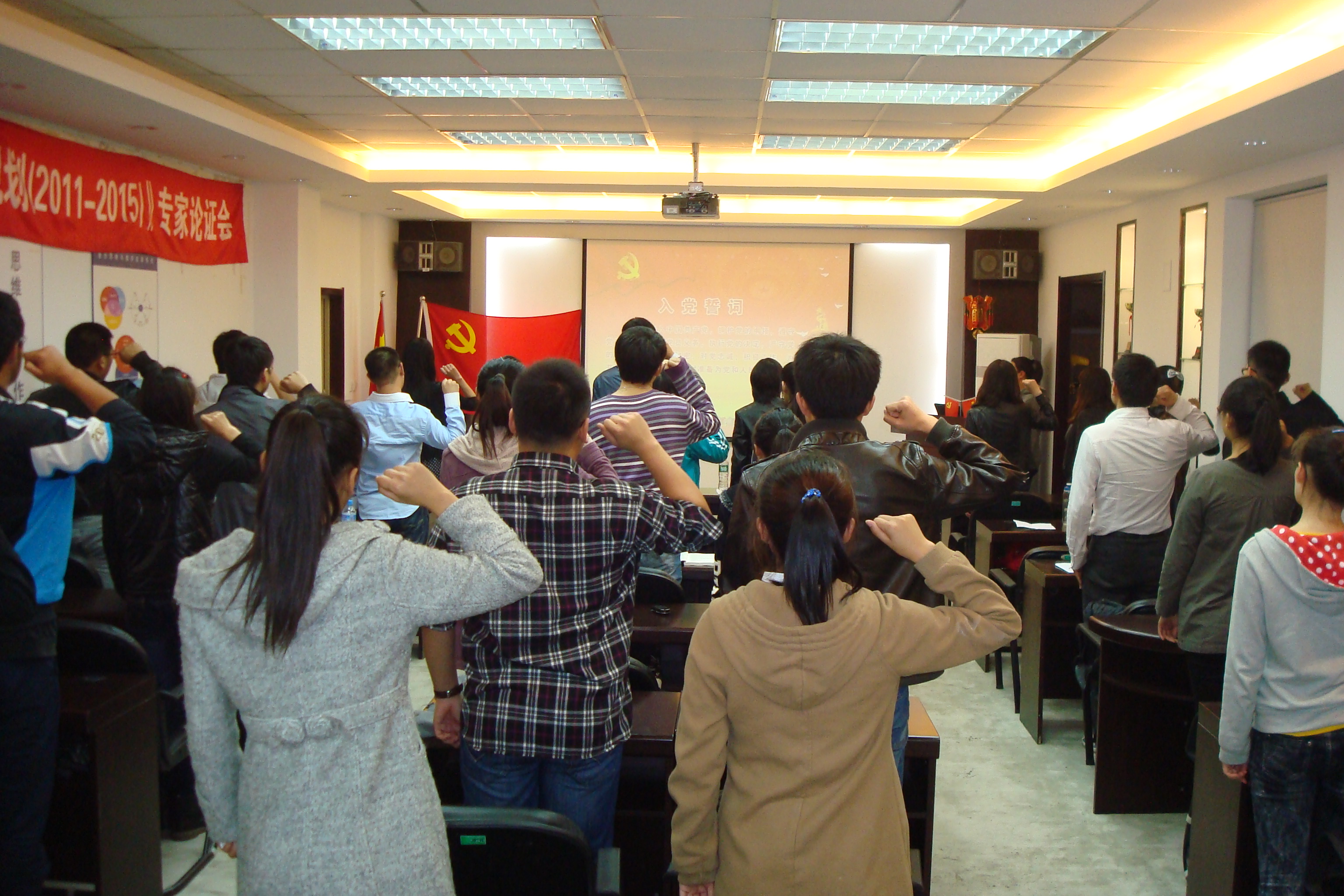 会议在雄壮的《国际歌》声中拉开帷幕,全体党员重温入党誓词,嘹亮的歌声和神圣的誓词再次激发了党员为党的事业奋斗终生的热情和激情。会上,刘富江书记带领大家共同学习了中共十七届六中全会精神,他希望学生党员要深刻领会推行文化体制改革发展的精神,增强责任感和使命感,为社会主义文化大繁荣、大发展做出贡献。会议公示了2010年度中管党费收支情况,并向党员征求了对机关五支部和学院各项工作的意见和建议,与会党员积极讨论,开诚布公,畅所欲言,会场气氛十分热烈。