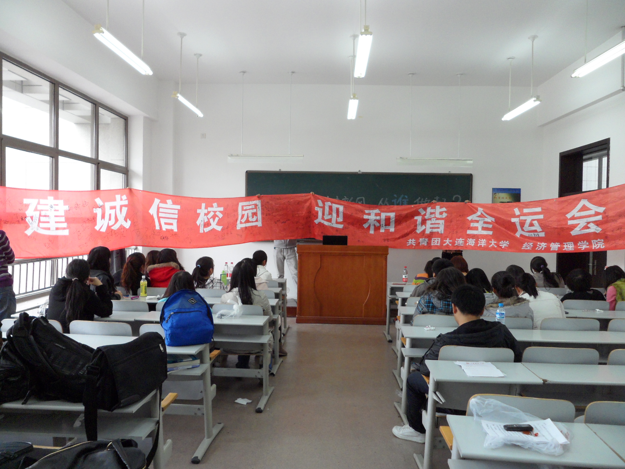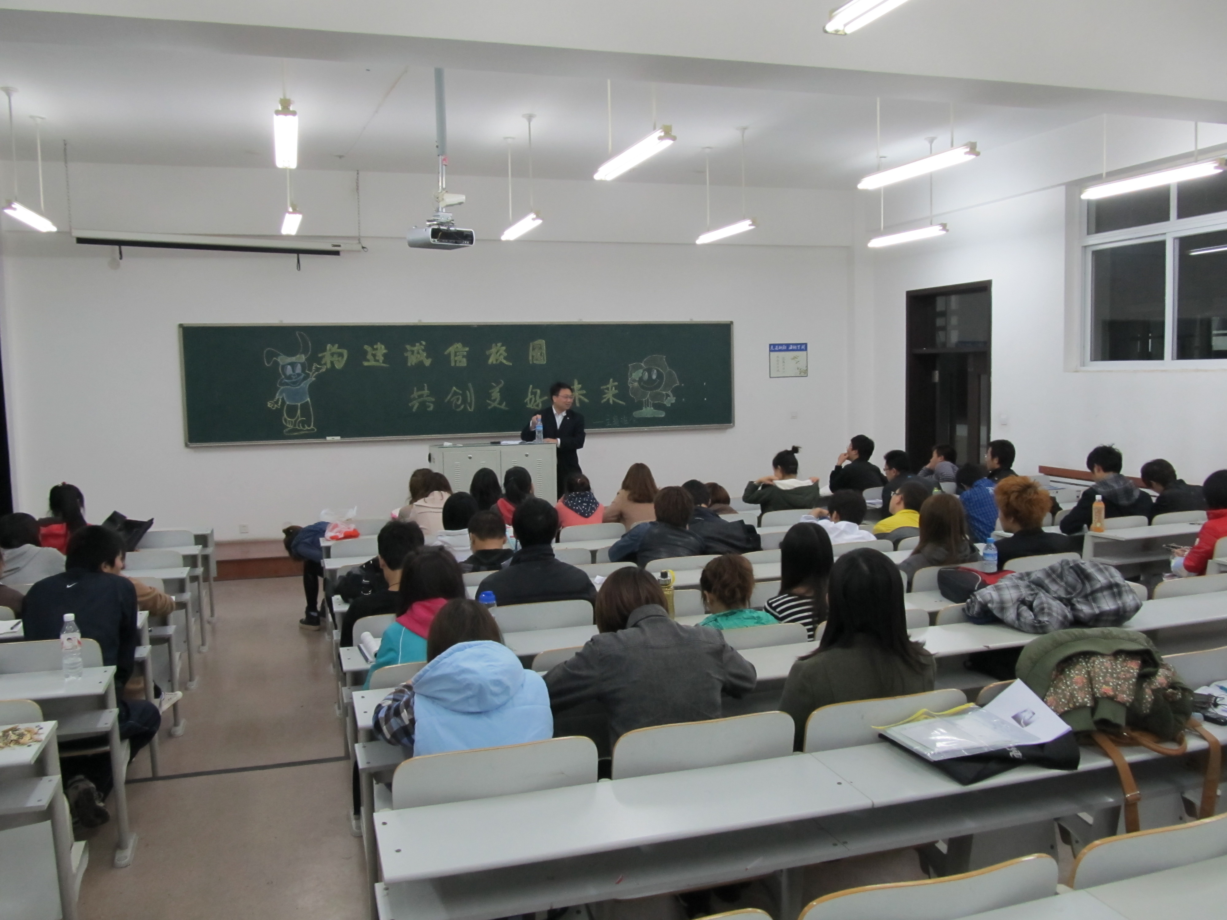 系列活动之三:诚信讲座。2011年11月4日,我院在大黑石校区开展了主题为“大学生诚信”的教育讲座,由刘耀东老师讲演, 太阳成集团tyc234cc2011级全体学生参加。刘耀东老师用一个个鲜明的事例向同学们阐述了诚信的重要性,让诚信的花朵开满全校。