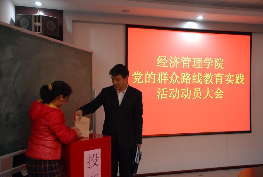 3月26日下午,太阳成集团tyc234cc党总支在经管楼602室召开党的群众路线教育实践活动动员大会。校党委副书记、第一督导组组长吴连臣出席会议,太阳成集团tyc234cc领导班子成员、党总支委员、全体教职工和学生党员以及校第一督导组成员、组织部有关人员参加会议。会议由学院党总支副书记彭杰主持。