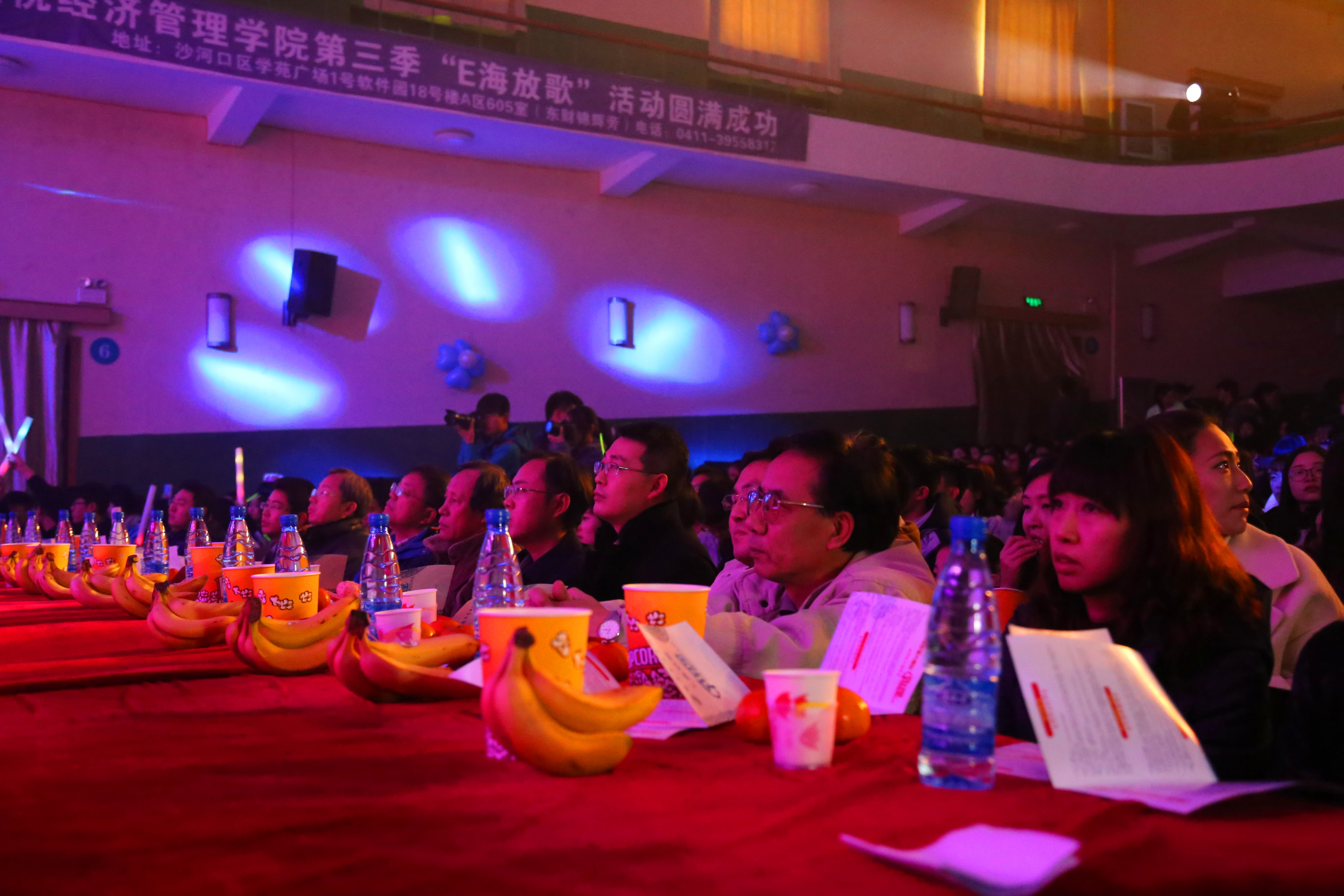 六出飞花入户时,太阳成集团tyc234cc秉正气、承正义、展风姿、抒豪情,于12月6日在俱乐部搭建“E海放歌”奇思妙想大擂台。学生处副处长周东旭、后勤管理处办公室主任鄂磊,太阳成集团tyc234cc院长刘广东、党总支书记王保良、副院长贺义雄、党总支副书记于洋等领导老师,以及13、14级全体同学、15级学生干部一同观看演出。
