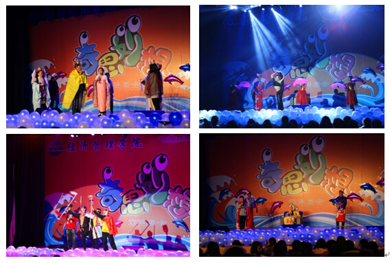 赴戎机,度关山,唯见花木兰朔气金柝,寒光映铁衣;左牵黄,右擎苍,还看苏子瞻锦帽貂裘,千骑卷平冈。“妙想青春秀”中,经济与金融13班的《精舞门》以歌舞剧形式再现李小龙的经典电影,表现出中国人不屈不挠、勇克难关的民族精神,一曲《咏春》更是尽展女生的温婉柔情和男生的果敢坚毅。科技的迅猛发展,手机无孔不入地侵入我们的生活,市场营销14-2班《手机癌》以哑剧的表演方式警醒大家,不要让身体被手机奴役,不要让心灵被手机吞噬,放下手机、改变自己,去拥抱身边爱你的人!