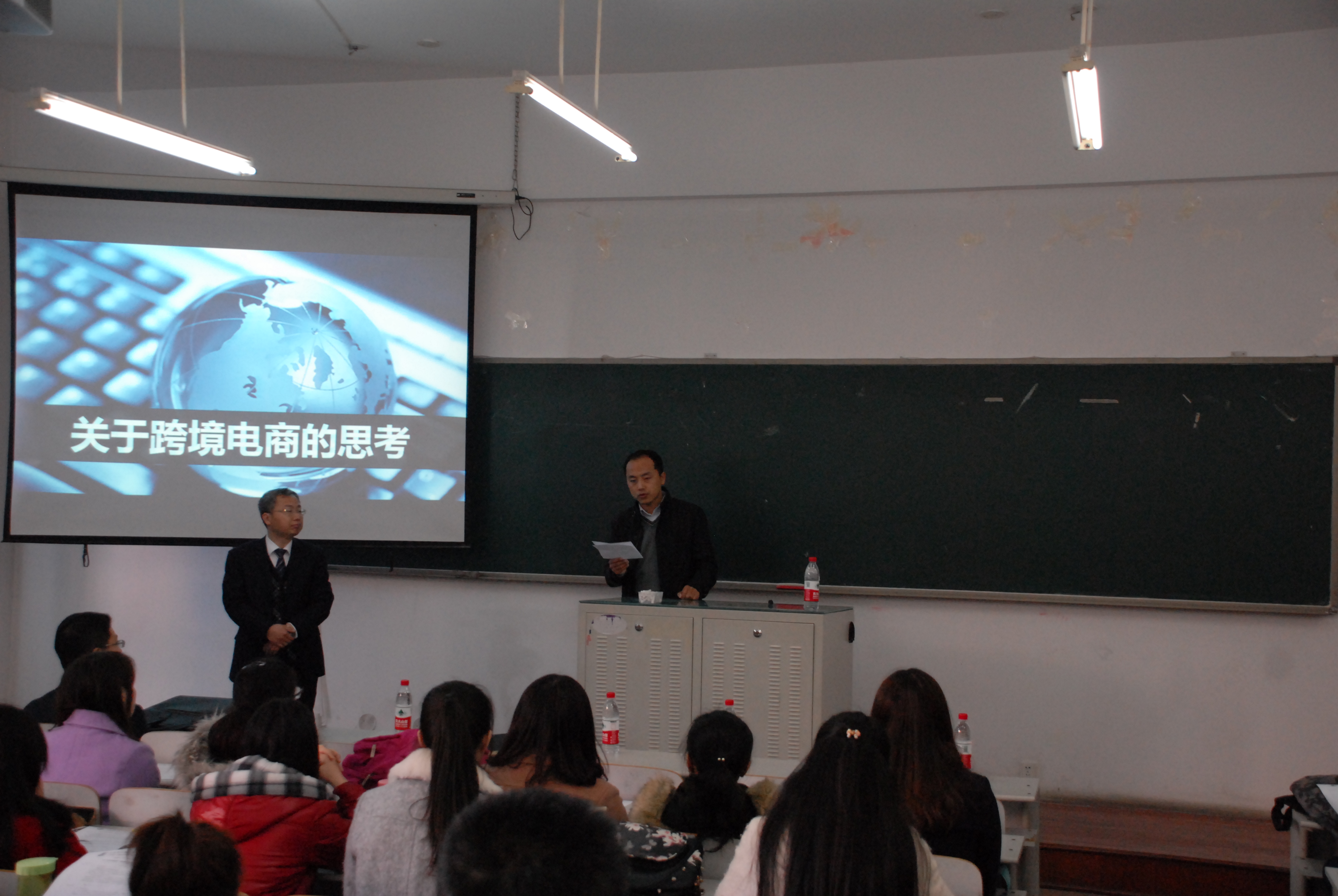 3月25日上午,太阳成集团tyc234cc在獐子岛126教室举办第九期“社会大讲堂”。本次讲堂邀请大连出口时代电子商务有限公司总经理徐延峰,结合自己的亲身经历畅谈跨境电商的“前世今生”。教务处副处长刘宪杰出席讲堂,学院党总支书记王保良、副院长贺义雄、营销教研室教师以及市场营销2013级、2014级全体学生参加本次活动。讲堂由王保良主持。