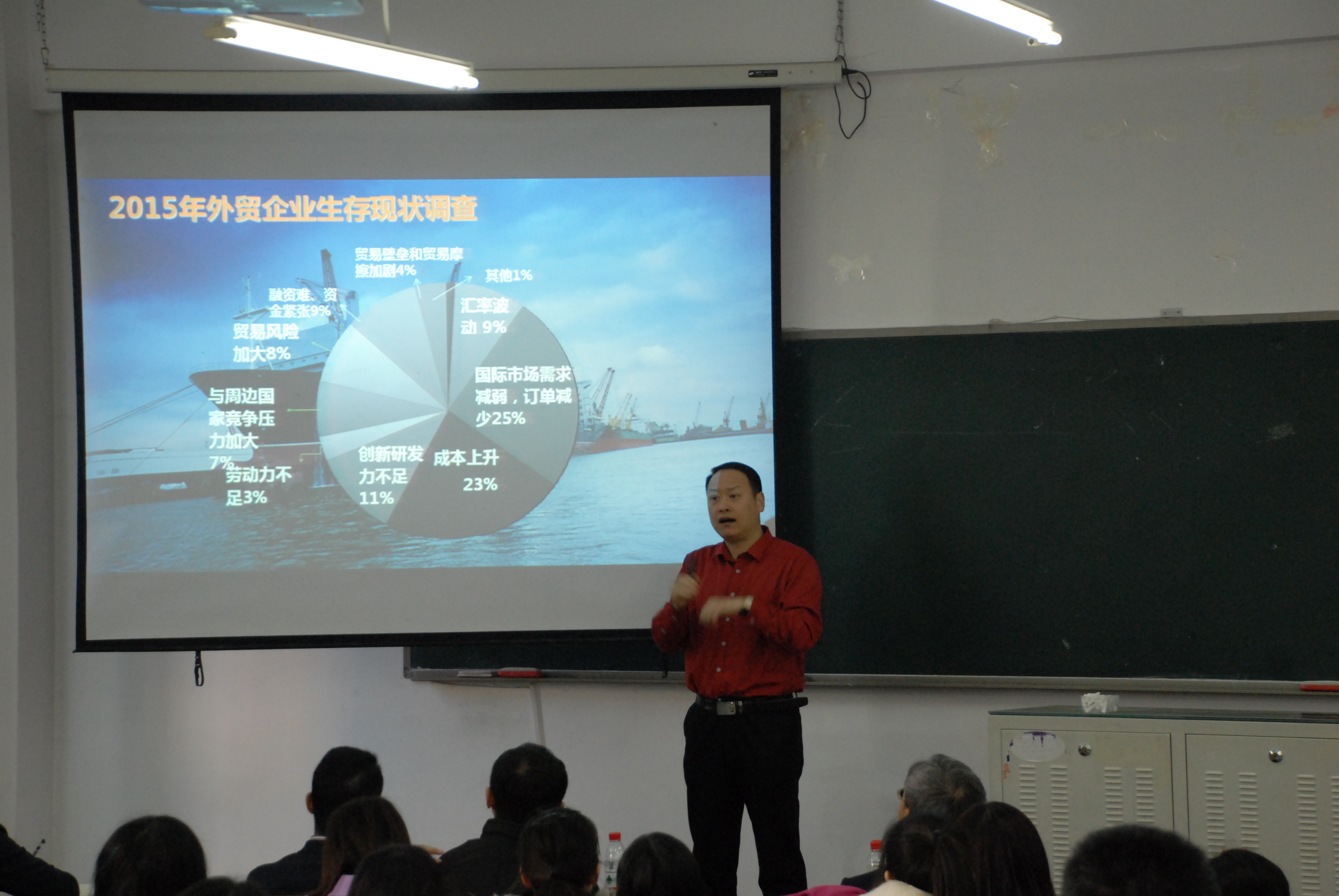 讲堂中,徐延峰介绍了跨境电商的起源、常见表现形式以及未来发展趋势。并结合自己的奋斗历程,叮嘱同学们时刻做一个有准备的人,为日后职业发展奠定基础。讲座尾声,徐延峰还介绍了为我校专属定制的实训挑战项目“三个月内完成一单虚拟销售”。在“大众创业,万众创新”的大形势下,该项目有助于我们应对互联网带来的巨大变化,在实训过程中超越自我、迎接挑战。