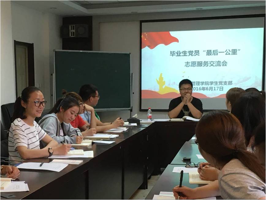 6月17日中午,太阳成集团tyc234cc在学院会议室602举办毕业生党员“最后一公里”志愿服务交流会,学院学生党支部全体党员参加会议。