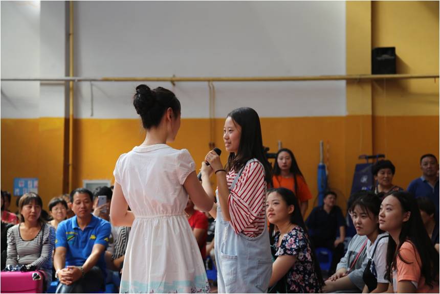 课堂由“开篇”、“热身”、“破冰”、“生活与感恩”、“深入训练”、“结课”六个部分组成。精心制作的开篇视频,带领全体新生和新生家长畅游渤海校区,对学院历史、教师风采及院系特色活动有了初步了解。伴随着2015级学长学姐热情洋溢的歌曲串烧,活动正式拉开序幕。“新生采访”教会同学们专注,“黄金掌声”教会同学们团结,风格迥异的自我介绍也使新生有足够的平台展示自我。伴随着活力四射的现代舞蹈,各班以班级为单位构思出本班口号,嘹亮的口号展示让我们感受到了2016级新生的青春热情。该过程不仅对临时负责人的组织能力提出挑战,也考验了每一位同学的集体荣誉感和团队凝聚力。紧接着一首感人的《时间都去哪儿了》唱哭了场下的新生和家长,主持人的深情独白更是加深了现场的温馨氛围。新生们来自祖国大江南北,诗朗诵《我的南方北方》为大家带来了一场精彩的视听盛宴。