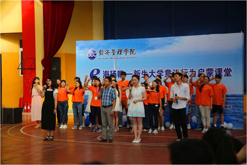 最后,伴随着全体工作人员合唱校歌《海洋骄子,蓝色理想》,新生第一堂课圆满结束。我们期待2016级新生秉山海之正,承经管之义,怀揣梦想,坚定前行,为学校和学院的发展铸造新的辉煌!