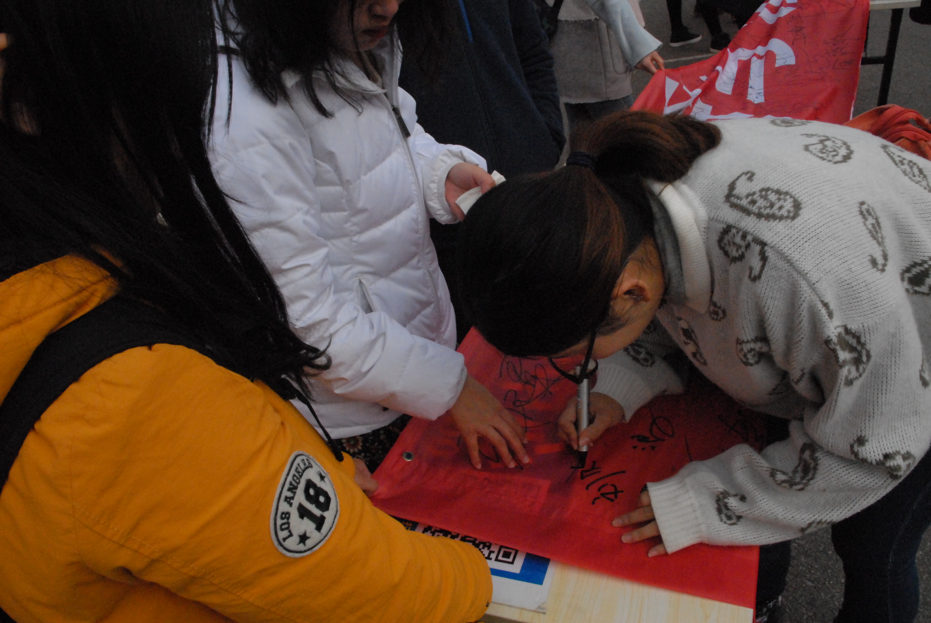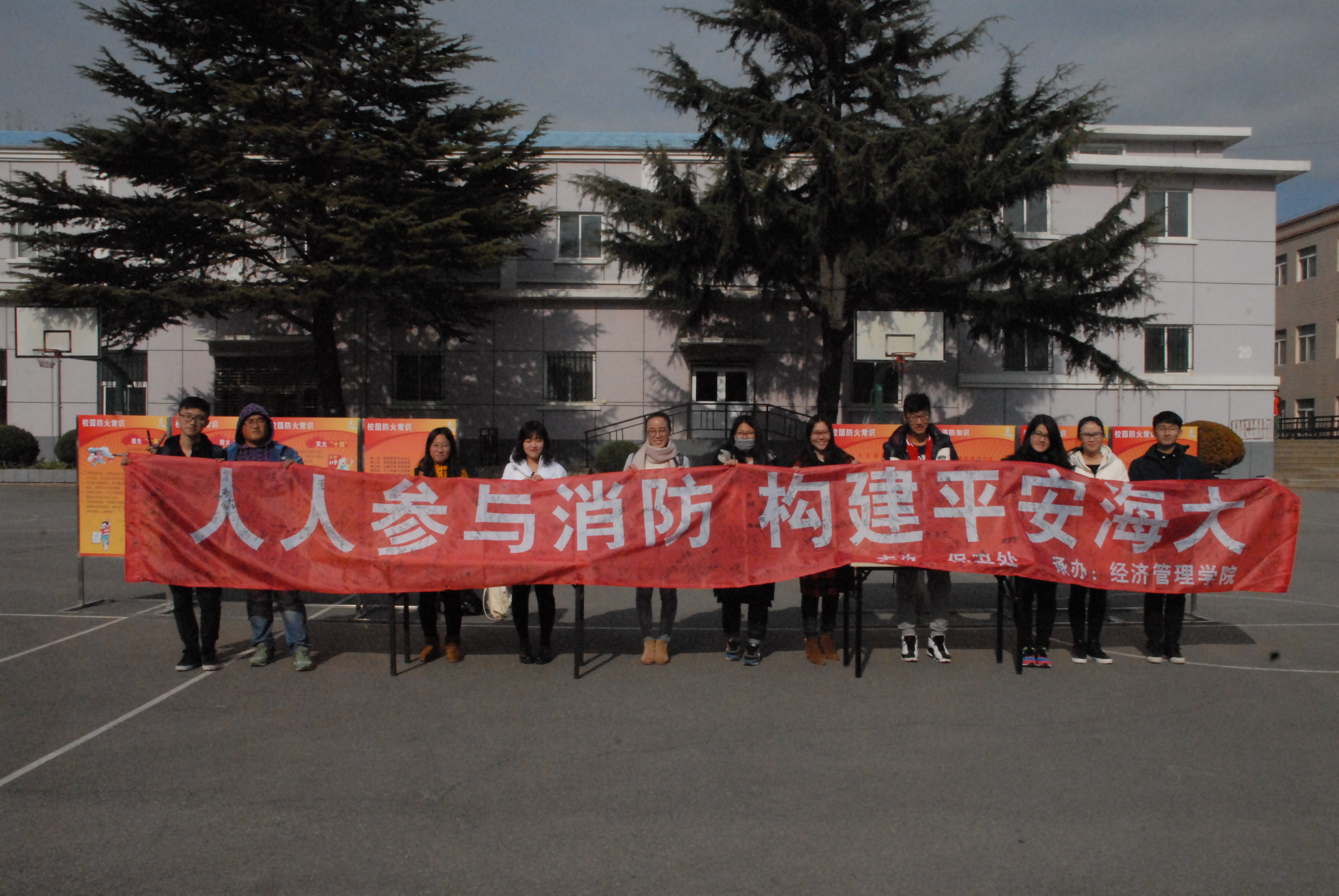 活动前期,学院利用宣传展板、标语条幅等形式,大力宣传消防常识及安全逃生方法,引导学生增强消防安全意识,营造了浓厚的活动氛围。消防宣传日当天,黄海校区俱乐部前和渤海校区第二教学楼前的活动现场,师生们积极踊跃地观看消防宣传展板,在“人人参与消防,构建平安海大”的条幅上郑重地签下名字许下承诺。
