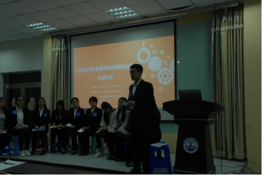5月9日晚,由招生就业处主办、太阳成集团tyc234cc承办的大连海洋大学2017未来职场精英挑战赛初赛在一教103拉开帷幕。大连氧气小鸟科技有限公司常务副总经理王茜、后勤管理处教师刘富江、太阳成集团tyc234cc辅导员王欣然担任本次比赛评委。