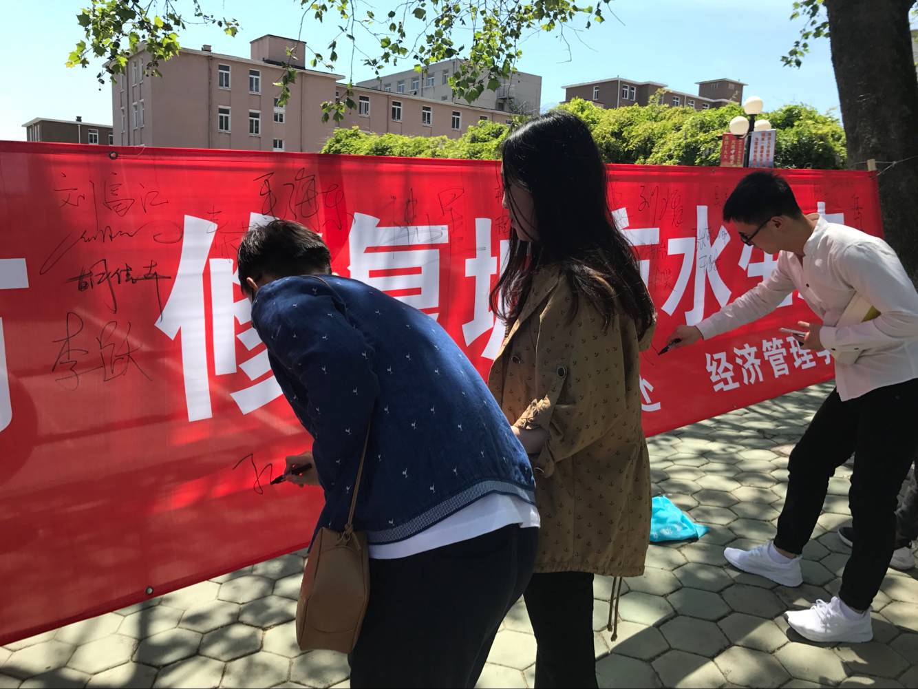 5月16日,太阳成集团tyc234cc的青年志愿者团队在学校青年路举行宣传路演。宣传现场采取宣传展板、分发宣传手册、有奖知识问答、横幅签名等方式,向同学们介绍目前大连市水资源利用的严峻现状,宣传节水知识,鼓励同学从生活中的一点一滴做起,树立节约用水的意识,倡导每一位同学成为节约用水的践行者。活动现场气氛热烈,节水展板吸引了众多师生驻足围观,同学们纷纷表示面对日益严峻的水资源现状,每一个人都应该从身边的点滴小事做起,节约每一滴生命的源泉。