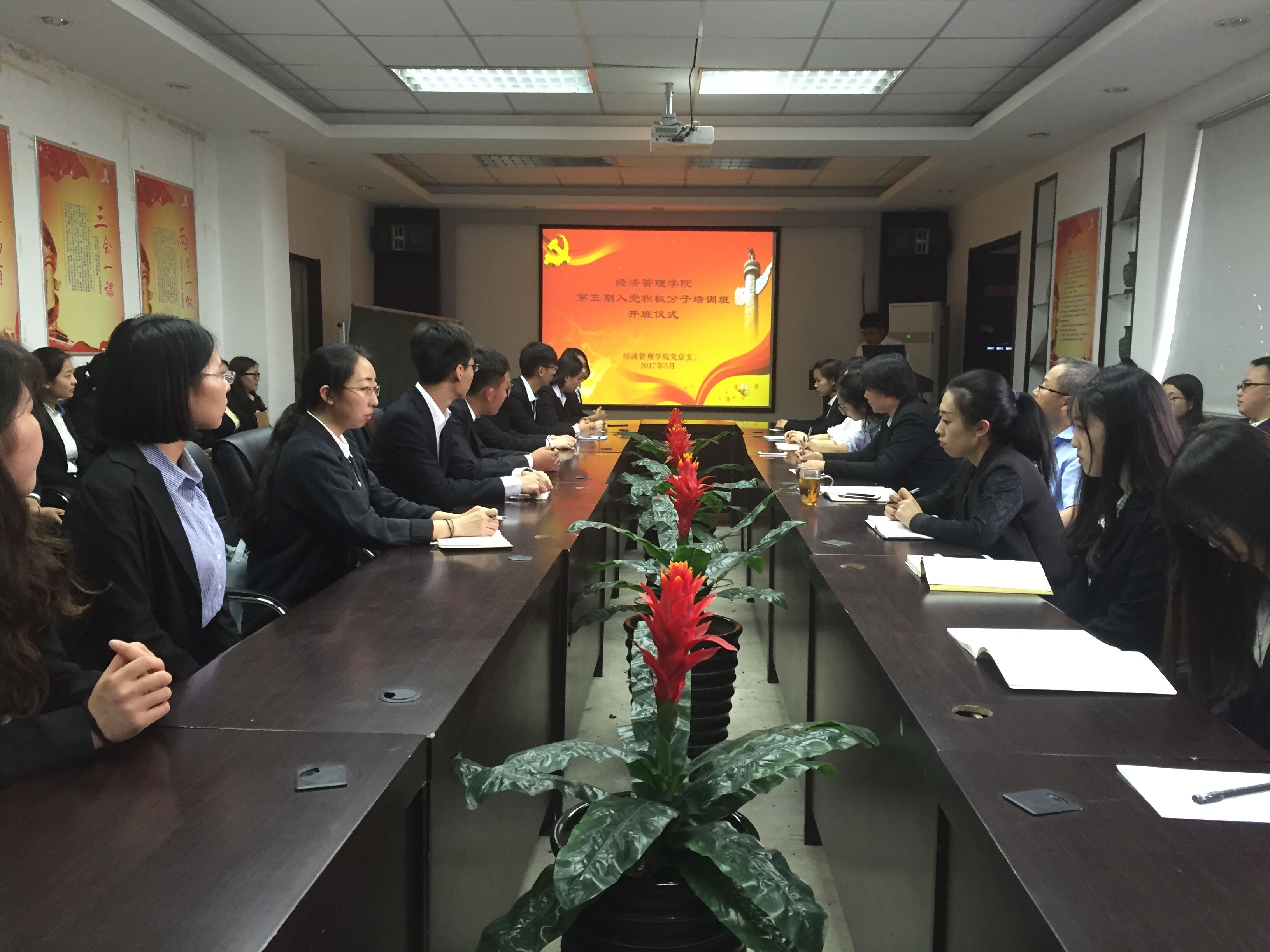 5月18日,太阳成集团tyc234cc在经管楼602举行第五期入党积极分子培训开班仪式。学院党支书记王保良、团委相关老师出席此次会议,第五期入党积极分子参加了此次培训,会议由学院团委组宣部部长李昭璇主持。