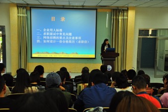 王茜就如何一击必中,成为面试中的佼佼者,分享了自己多年的面试经验及技巧。在详细介绍面试种类的基础上,分门别类的强调了往年同学们容易出现的问题,并结合社会发展指出了面试环节的变化,提出了中肯的建议。曲迪结合目前大连市就业市场的实际情况,向与会学生介绍了如何确定择业意向、进行择业准备,并着重叙述了签订协议时的注意事项及签约后的注意事项。他建议毕业生们能有针对性的培养锻炼自己的能力,以便在应聘时能找到如意工作。