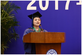 农村与区域发展2015级祝晓彤同学代表全体研究生毕业生发言。学生时代犹如白驹过隙、匆匆流逝,却在而后的时光里细水长流。难以忘记入学时那一张张热情的笑脸,难以忘记因同一个目标而努力工作的学生会,难以忘记和老师同学一起奋斗的每一瞬间,这之中夹杂着深情,夹杂着感动,夹杂着不舍与留念。千言万语,道不尽那年那月;万水千山,隔不断缕缕师恩。