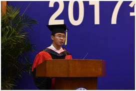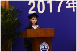 经济学2013级岳晓菲同学代表全体本科毕业生发言。她的同学中,有的选择读研深造,继续于学海作舟前行;有的选择出国留学,将中西文化融会贯通;有的选择参加工作,接过社会主义建设的衣钵。无论身在何方,他们拥有一个共同的标签——都是经管人,传承经管之义,研习民生之命脉国家之经纬;都是大海大人,德润方厚,矢志求学融贯江海。
