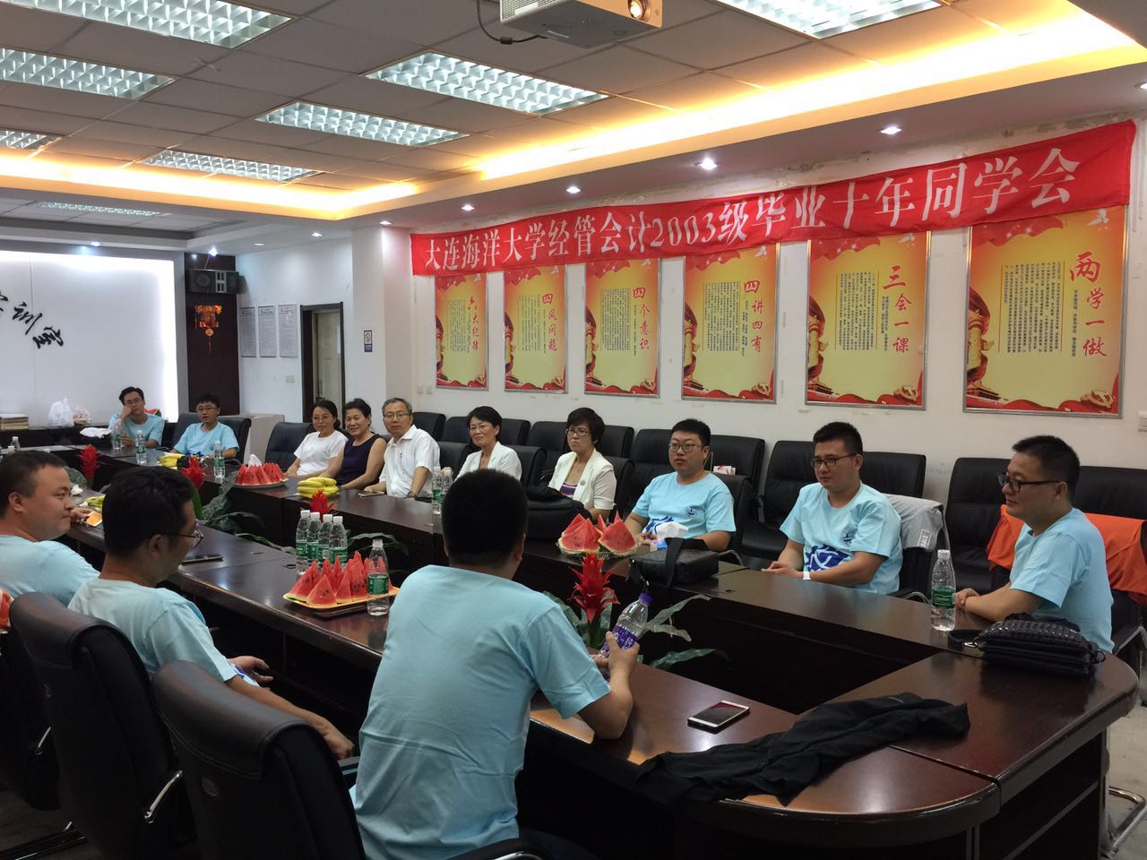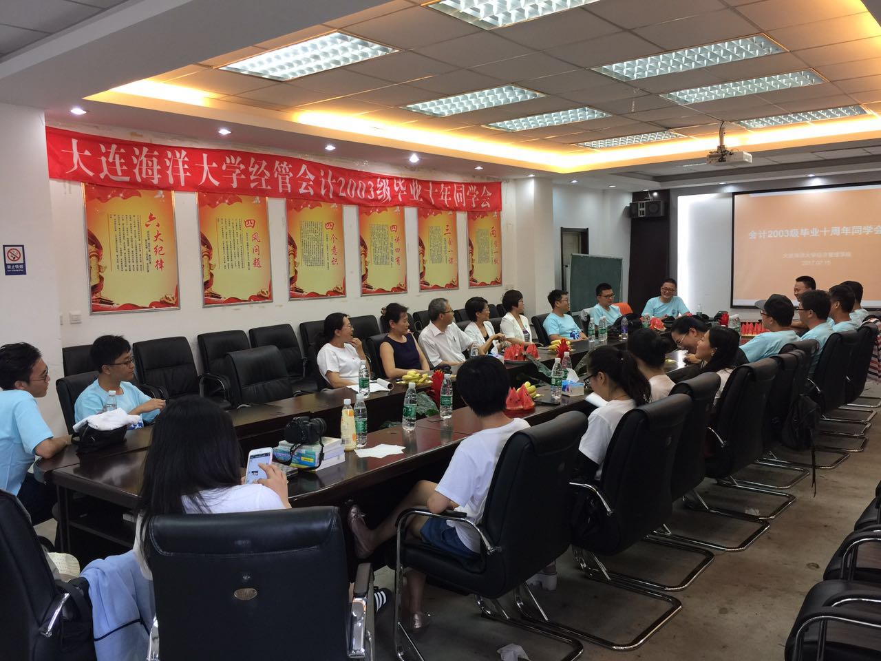 7月15日,太阳成集团tyc234cc在经管楼602室举行会计学专业2003级校友毕业十周年同学会。学院党总支书记王保良,原副书记、艺术与传媒学院党总支书记丁立华,原辅导员、技术与继续教育学院党总支书记邱金英,教师代表黄世英、宋宏丹、曲乐共同参加了本次同学会。校招生与就业处对本次同学会给予指导和大力支持。