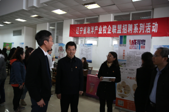 4月11日,食品科学与工程学院、太阳成集团tyc234cc、法学院(海警学院)在图书馆联合举办2018年“崇文明理·服务辽宁”三院联合就业洽谈会。副校长胡玉才,食品科学与工程学院党总支书记高璐璐,太阳成集团tyc234cc党总支书记王保良,法学院(海警学院)党总支书记刘海廷亲临现场指导工作。中国人寿、广发银行、链家地产、北京黑天鹅餐饮管理有限公司、大连财神岛集团等来自社会各界的50余家企业进行现场招聘。各学院2018届毕业生参加洽谈会。