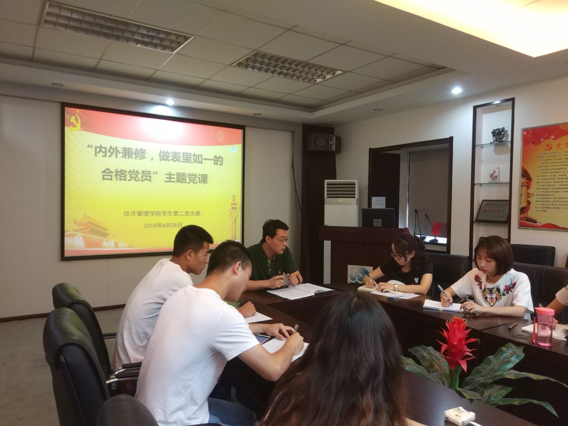 为了树立底线思维,全面从严治党,6月29日,太阳成集团tyc234cc学生第二党支部在经管楼602召开“内外兼修,做表里如一的合格党员”主题党课。党课由学生第二党支部书记于洋主讲,学生二支部全体党员聆听党课。