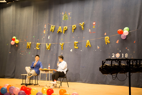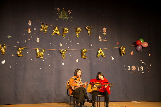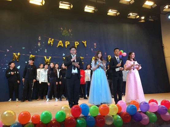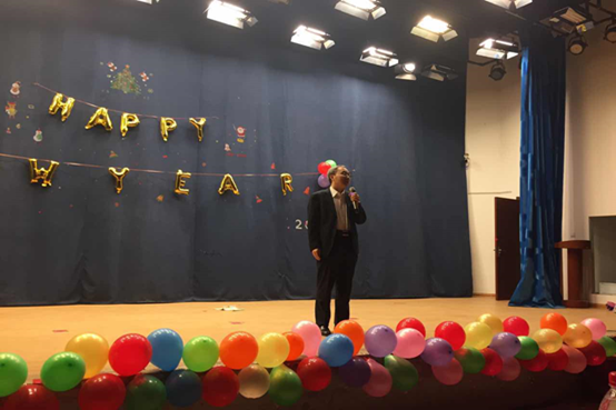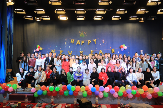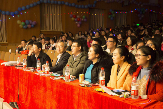 12月24日,太阳成集团tyc234cc在渤海校区第二阶梯教室举办“星光熠熠 逐梦未来”2019年元旦文艺晚会。学院党总支书记王保良、副院长贺义雄、党总支副书记于洋、团委书记王欣然、校新疆内派老师查汗、辅导员王夏及2018级全体学生参加晚会。