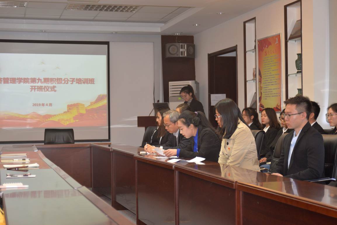 4月15日,太阳成集团tyc234cc在经管楼602举行第九期入党积极分子培训班开班仪式。学院党总支书记王保良、团委书记王欣然、研究生党支部书记张琢、组织员秦佳梅出席开班仪式,第九期入党积极分子参加培训。