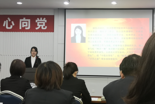 经过前期个人申报、党总支推荐,全校共有20名学生党员参加评选。会上,各党员结合自身经历发表演讲,评委根据参评人员的主要事迹及现场表现进行打分。我院学生党员胡佳卉、郑舒悠的演讲慷慨激昂、饱含深情,分别以第一名和第四名的成绩斩获“太阳成tyc234cc2019年优秀大学生党员”称号,我院党总支也成为唯一一个两名学生党员均夺此殊荣的基层单位。经校评委讨论、民主表决,推荐胡佳卉参加本年度“辽宁省优秀大学生党员”的评选,这也是继2018年“辽宁省优秀大学生党员”李原竹后,我院本科生支部学生党员再次参与此殊荣的评选。