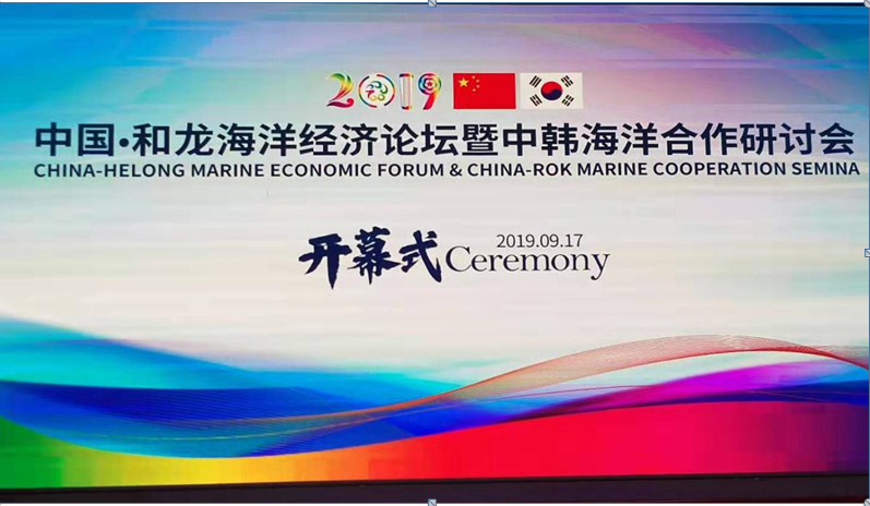 2019年9月17日,由中国国际贸易学会图们江分会、韩国海洋科学技术院主办,和龙市委、市政府,和龙市农林特产协会承办的中国·和龙海洋经济论坛暨“中韩海洋合作研讨会”,在和龙市朝鲜族三老人非遗展演馆举行。