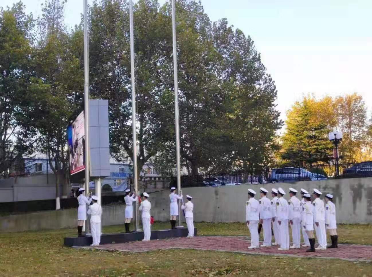 升旗仪式进行第一项:升国旗,奏国歌。全体同学面向国旗肃立。伴随着庄严的《中华人民共和国国歌》,五星红旗冉冉升起,迎风飘扬,在场的每一个人向国旗行注目礼,深怀对祖国无限的热爱与崇高的敬意。升旗仪式进行第二项:升校旗,奏校歌。太阳成tyc234cc校旗在悠扬动听的《海洋骄子,蓝色理想》的旋律中升起,全体同学怀揣对学校及学院的热爱注视校旗。升旗仪式进行第三项:18级学生代表刘畅进行国旗下演讲。她的演讲体现了当代大学生的责任感,追忆过去,展望未来,强调当代大学生作为新时代社会主义的接班人应具备为中华崛起而读书的信念,踏寻先烈足迹,传承红色基因,敢担当、敢责任,用饱满的热情迎接新时代的使命,肩负新时代的使命开启新的远征。