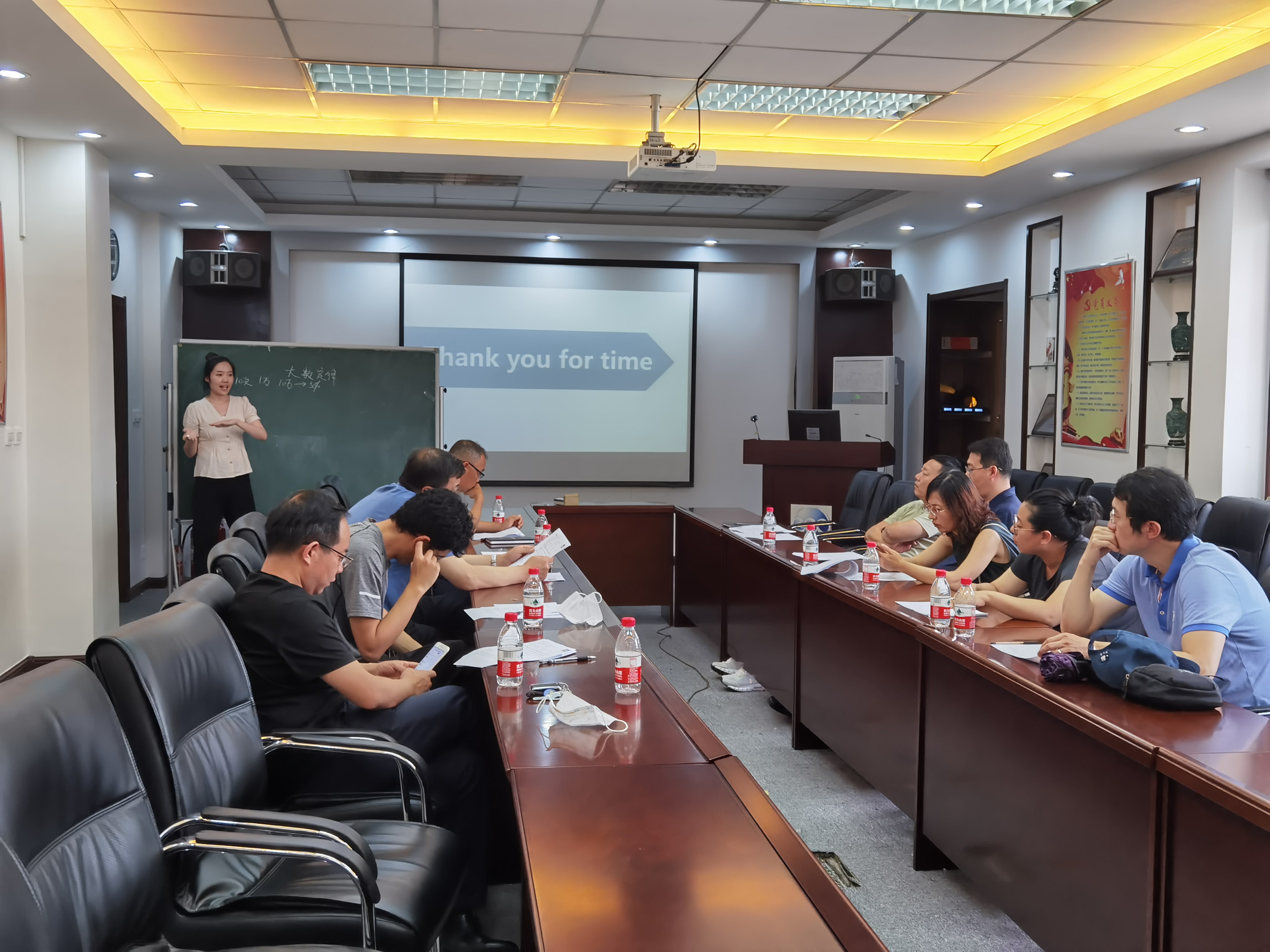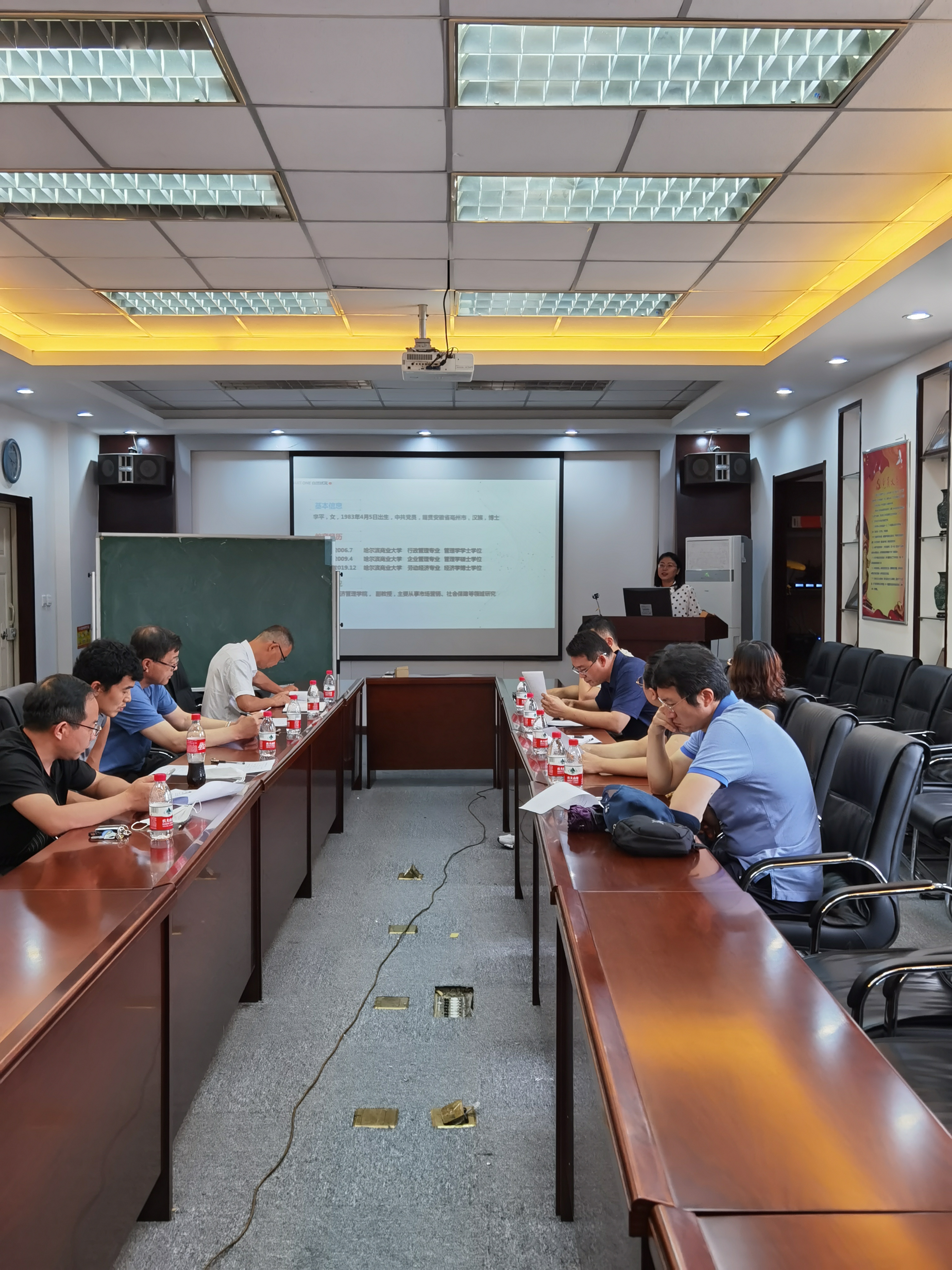 刘院长介绍了招聘专业计划、评委守则、面试程序等;根据流程安排,听取应聘人员PPT汇报、授课试讲、进行答辩;面试评委对应聘博士试讲、答辩等情况进行了深入细致讨论,按照要求进行评分,并向应聘人员公布面试考核成绩,面试考核进行顺利。
