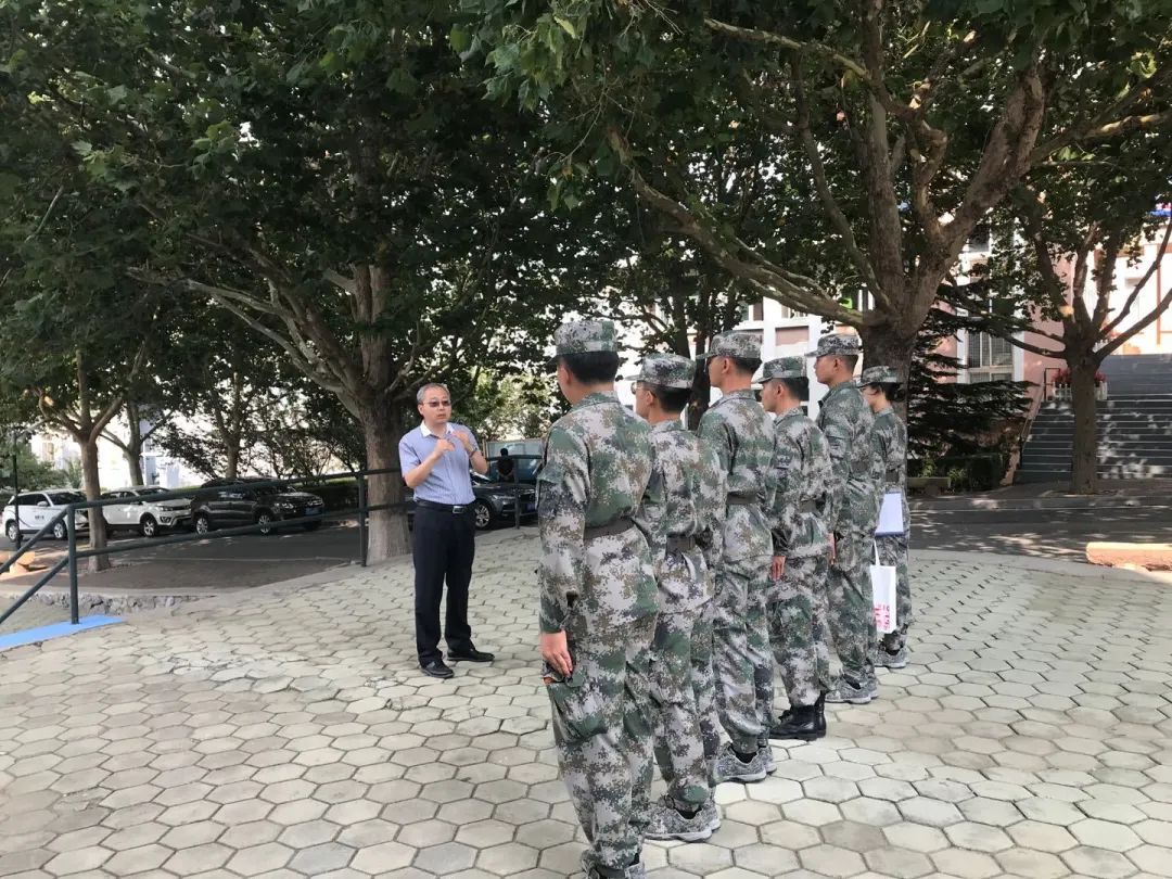9月22日,党总支书记王保良代表学院对全体军训教官进行慰问。对教官们严谨的工作态度和认真负责的精神给予了高度评价,并嘱咐了军训教官们有关军训具体内容的细节。书记对2020级承训教官寄予厚望,望他们认真执行军训计划,严肃军训纪律,坚持以人为本、科学施训,不畏风雨的军训信条,并希望在下一阶段军训中培养新生们国防意识和坚毅的品质,高质量、一丝不苟地地完成军训演练任务。