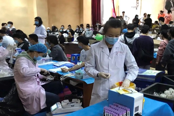 2020年10月25日中午,学院献血活动在黄海校区实验楼阶梯教室一顺利进行。来自17、18级的七十八名学生踊跃报名参加,学院党总支副书记于洋、辅导员李春宇全程陪伴,看望和慰问了参加献血的同学们。