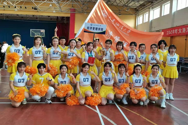 在学校开展的“海邻杯”啦啦操大赛中我院啦啦操队技压群芳,一举夺魁。