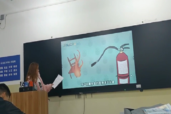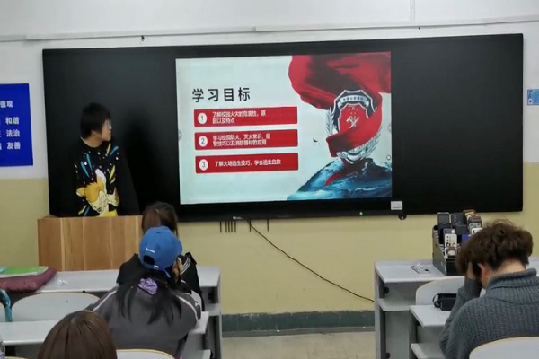 此次活动以班级为单位,各班学习委员及心理委员利用生动有趣的视频、图片材料,声情并茂地向班级同学们科普了消防安全知识。在介绍火灾中如何合理利用身边道具求助、逃生环节,同学们热烈地参与讨论,妙语连珠,各出奇招,教室里不时爆发出阵阵欢笑。