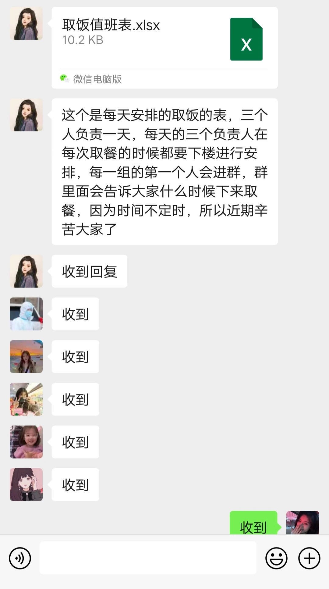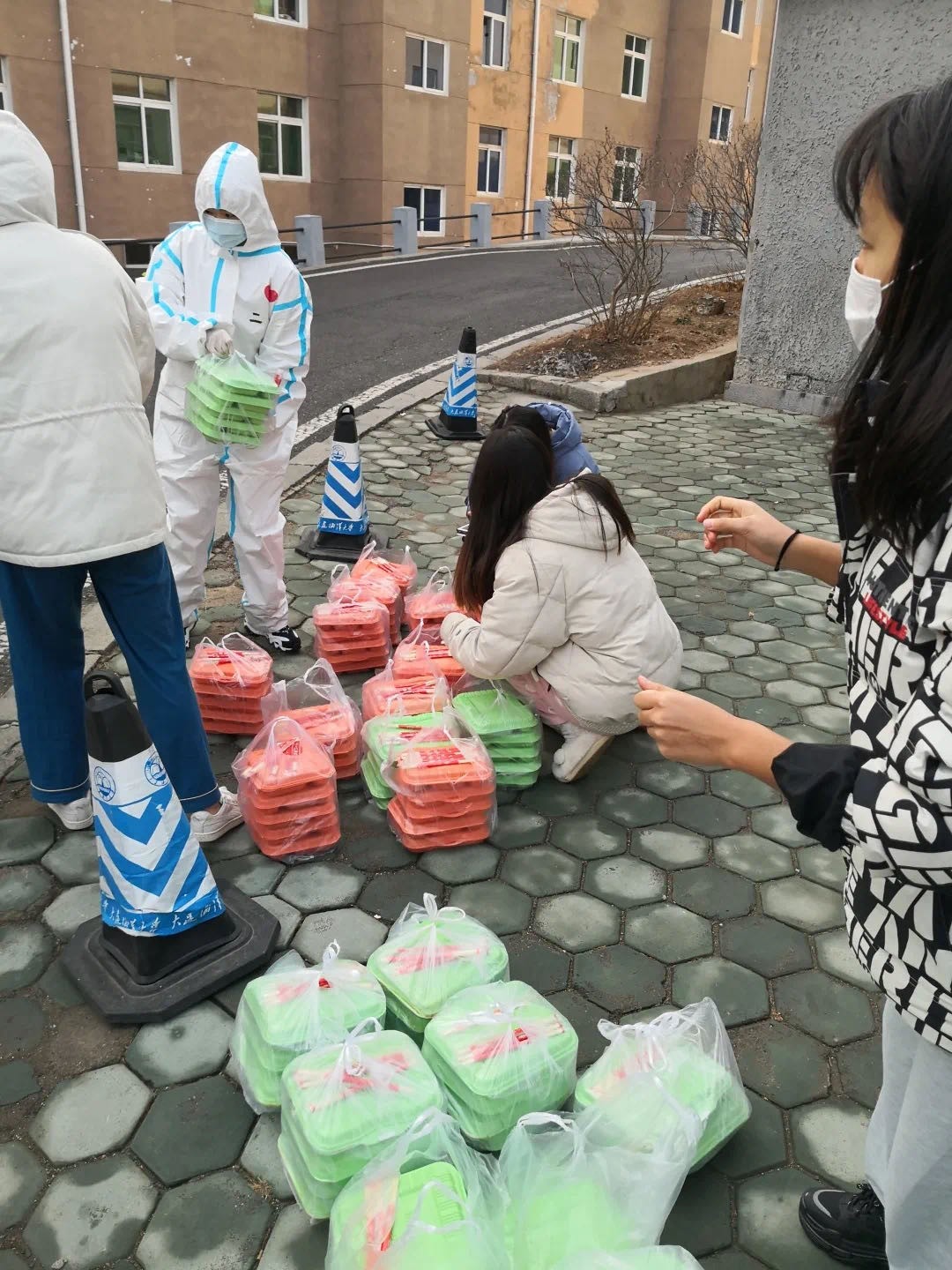 与此同时,学生干部们充分发挥了学生交流群的作用,积极准确地把信息传递给我们;学生志愿者每一日三餐的配送,风雨无阻,不畏严寒,我们吃到口中的不仅是饭菜,更是学校、食堂、老师们、志愿者们对我们满满的守护与爱。