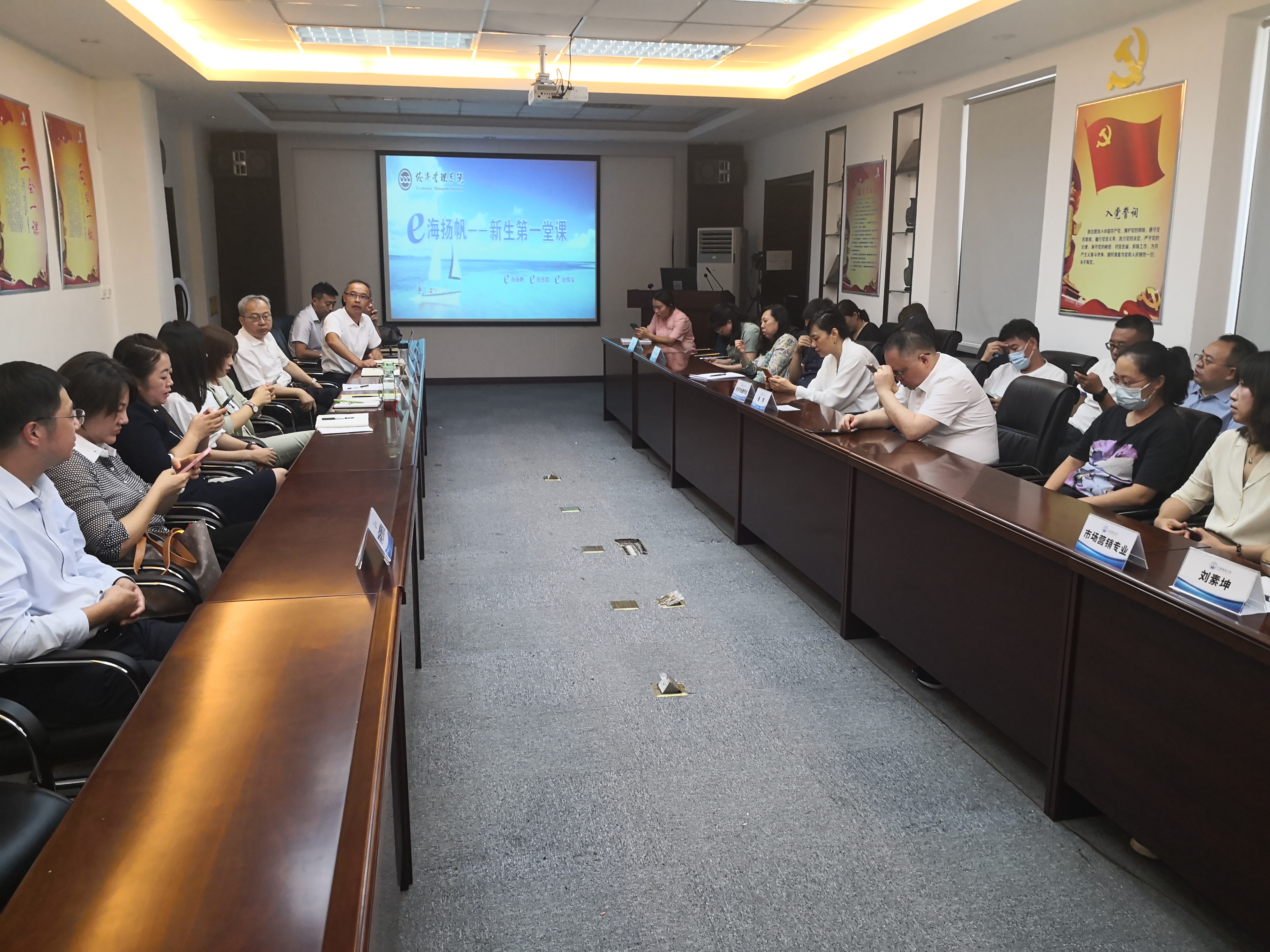 9月5日,我院在经管楼606开展线上新生入学教育暨“e海扬帆”2021级新生第一堂课。本堂课由学院副院长李强主讲,学院领导班子、全体教师、2021级新生及家长参加。