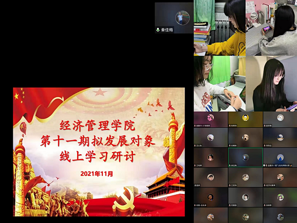 11月10日,学院党总支组织第11期发展对象开展线上学习,会上进行了有关《中国共产党普通高等学校基层组织工作条例》的专题研讨,同时学院组织员秦佳梅对发展对象应怎样自觉接受党组织的培养、教育、考察进行了教育。