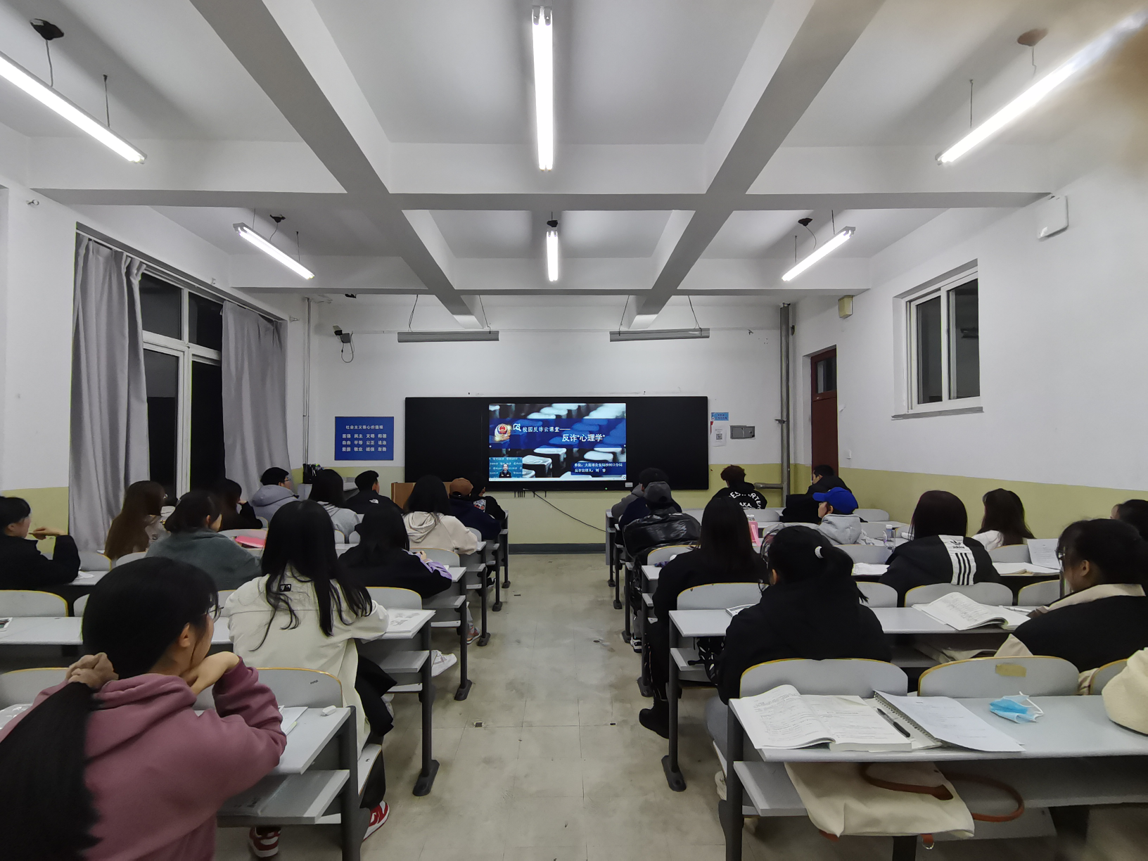 为预防和减少电信诈骗案件的发生,提高大家防范电信诈骗意识,12月9日晚上7点,我院组织学生集中观看由沙河口公安分局主办的校园反诈云课堂。