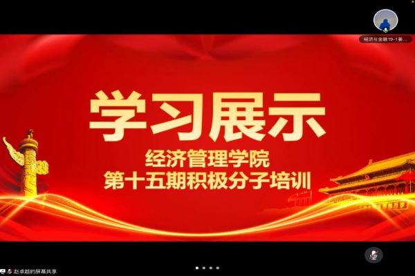 本次线上学习分享活动围绕“打造红色学习风尚”主旋律开展,第十五期入党积极分子分组轮流进行“红色光辉历史”学习情况汇报,讲好红色故事,加强党史学习。“一代人有一代人的使命,一代人有一代人的担当 ”,鞠春晓指出,各位入党积极分子除理论知识的学习之外,更应在实际生活和学习中争做表率,将中国抗疫精神和青年一代的社会责任与担当结合起来,正值疫情防控特殊时期,积极配合学校学院做好疫情防控工作,打好校园疫情防控阻击战。