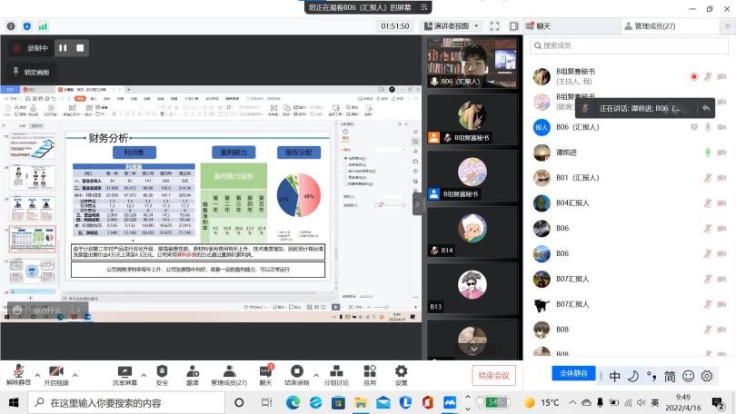 4月16日上午,第十二届全国大学生电子商务“创新、创意及创业”挑战赛太阳成tyc234cc校赛复赛采用腾讯会议线上举行。大连大学创新创业学院院长王谢勇、东北财经大学创新创业学院副院长杨兴凯、我校创新创业学院副院长于功志、我院教学副院长谭前进、应用技术学院屈武江教授、我院刘素坤副教授担任评委专家,30个进入复赛的项目进行线上答辩和路演,评审专家对项目一一进行提问和点评并给出具有针对性的指导意见。答辩结束后评审专家对参赛作品进行打分排序,遴选17个项目进入决赛复审,最终根据省赛组委会分配指标按复审成绩依次推荐省赛。