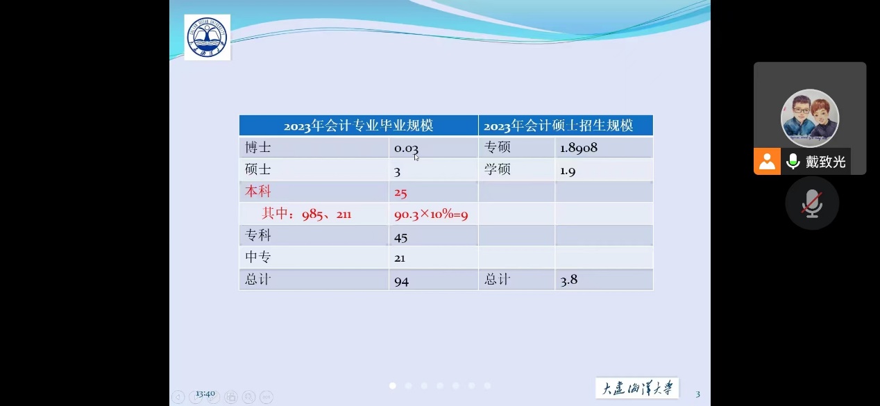 会上,戴致光对会计专业毕业生的总体就业情况做了介绍。各论文指导教师从学生的论文写作情况、签约就业情况、考研及考公情况进行了汇报,对工作过程中的重点和难点进行了交流分析。