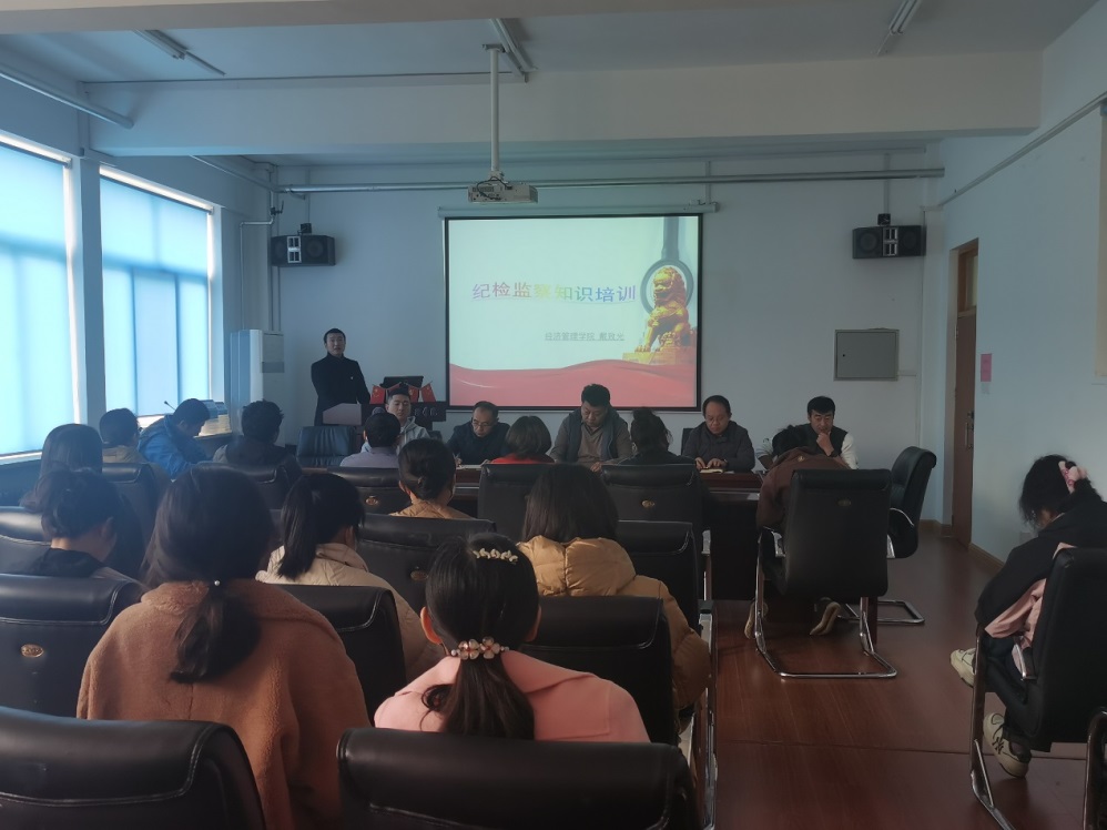 11月15日,太阳成集团tyc234cc在学院会议室为全院50余名教职员工举办了“纪检监察基础知识”专题讲座。讲座从纪检监察相关概念、纪检监察机构职责范围、信访举报办理程序、监督执纪 “四种形态”、纪检监察工作方法等方面对纪检监察基础知识进行详细的介绍。