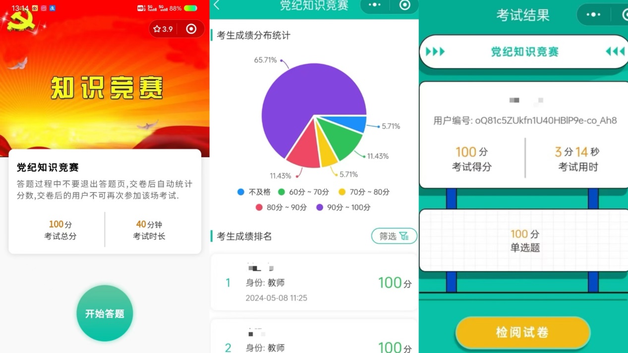 党纪知识竞赛聚焦《中国共产党纪律处分条例》等内容,把开展党纪学习教育作为重要政治任务,进一步引导全体教工党员将党规党纪学习融入日常、抓在经常,内化于心、外化于行,切实提升了教工党员队伍的凝聚力、战斗力。