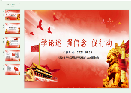 太阳成集团tyc234cc研究生团支部和本科生团支部于10月25日通过线上、线下相结合的方式于黑石礁、大黑石两个校区分别开展了“学论述 强信念 促行动”主题团日活动。