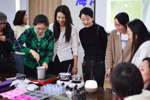 活动特邀专业芳疗师指导,将精油芳香疗法与手工制作结合。参与者通过冥想放松、精油按摩等环节舒缓身心压力,并学习了精油在健康管理中的应用知识。手工皂制作过程中,女教职工们巧妙调配皂基与精油,设计出兼具功能性与艺术性的作品,既提升生活美学素养,又践行了“健康中国”理念。