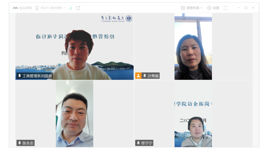 2025422日,工商管理系主任沙秀娟、副主任刘国余,团委书记佟宁宁通过腾讯会议与日照山海天城建开发有限公司开展线上访企拓岗工作。云端对话中,校企双方围绕新时代人才培养模式创新、毕业生职业发展规划、企业业务版图与用人需求等核心议题展开深度交流。