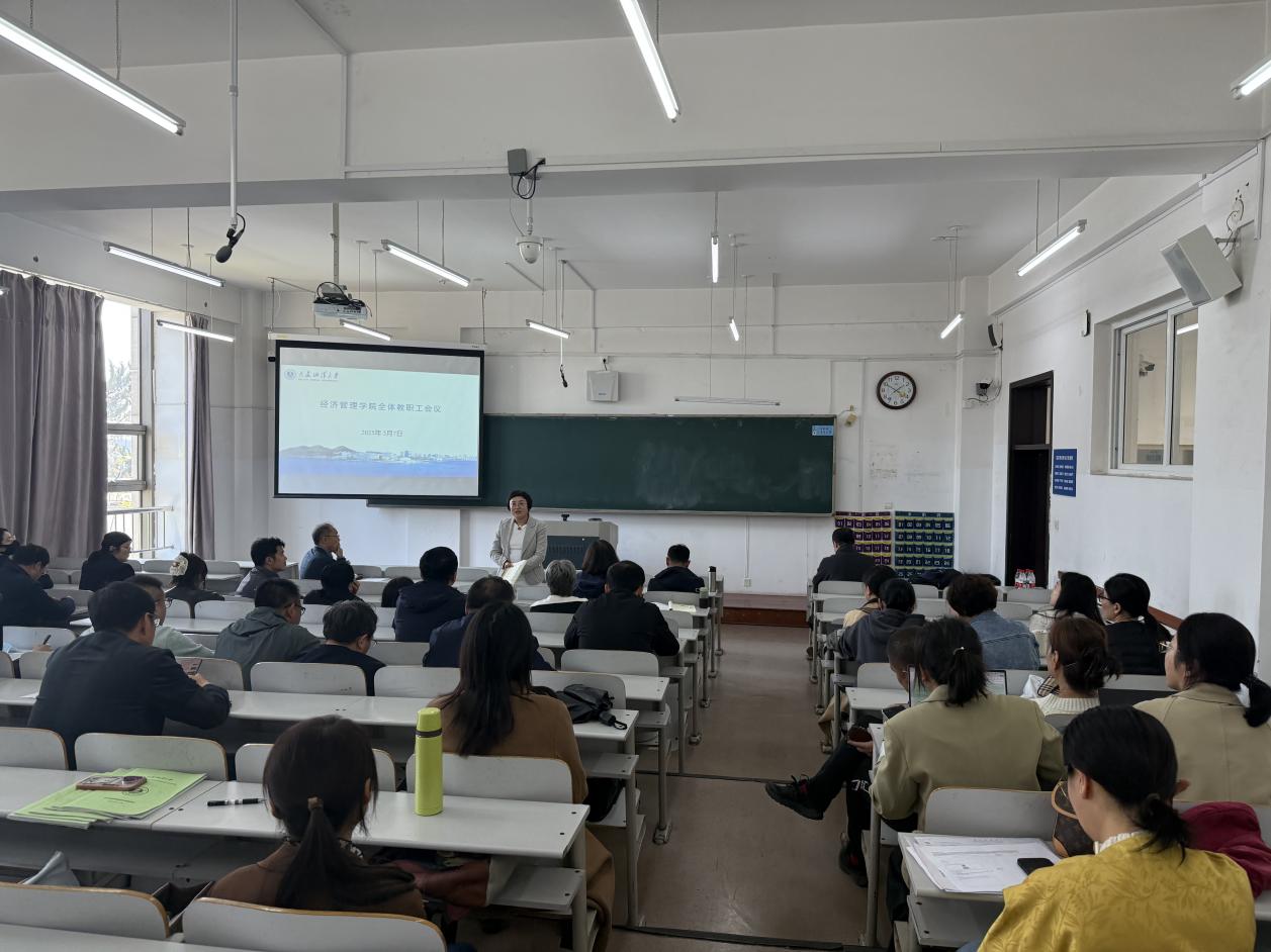 5月7日下午,太阳成集团tyc234cc在獐子岛111召开全院教职工大会。学院领导班子成员、全体教职员工参加会议,会议由学院院长赵万里主持。