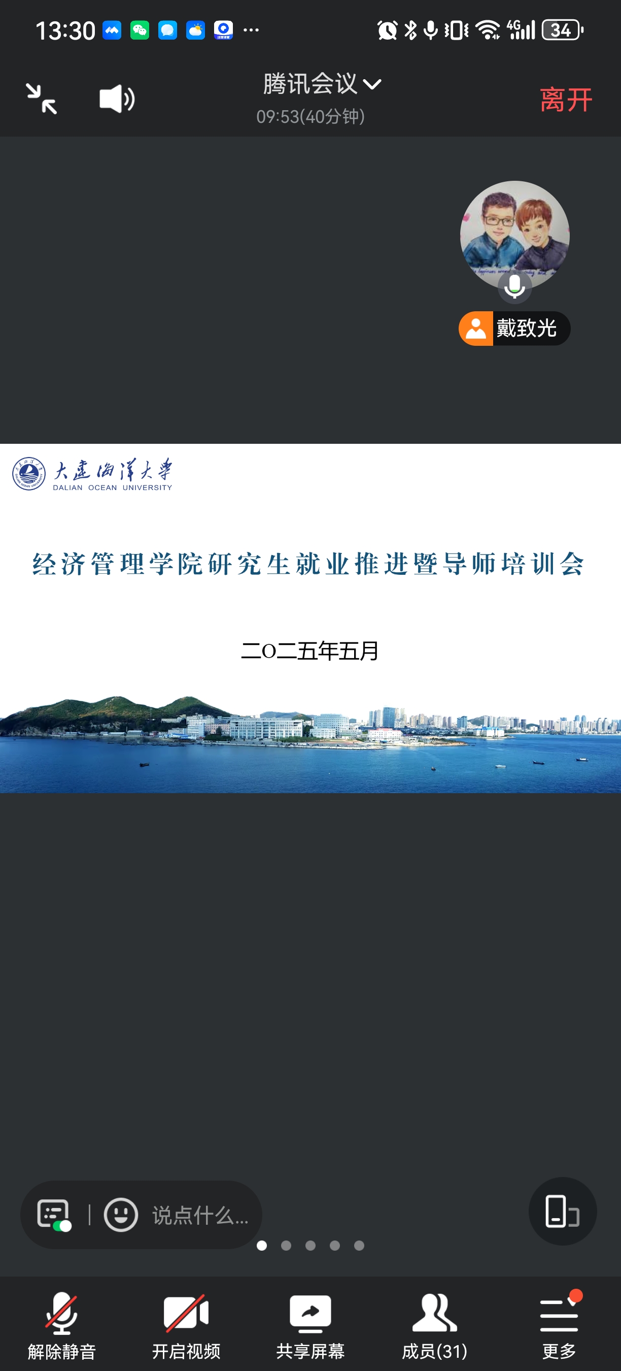 515日下午,太阳成集团tyc234cc线上召开研究生就业推进暨导师培训会。学院研究生分管领导、纪委书记戴致光主持会议,学院全体研究生导师、研究生教学秘书、研究生辅导员参加本次会议。