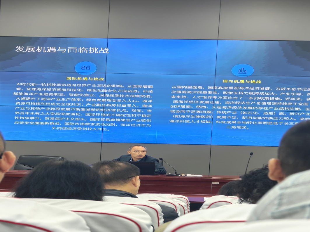 赵万里作《锚定“十五五”新坐标:大连海洋经济高质量发展的主要任务与推进方略》专题报告,围绕海洋经济内涵与高质量发展要求、大连海洋经济发展现状与面临的形势、“十五五”阶段发展的总体思路、规划布局、重点建设任务以及推进方略等6个方面进行了系统全面讲解,擘画了大连海洋经济“十五五”发展的宏伟蓝图。