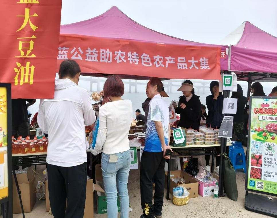 活动现场,各式各样的摊位琳琅满目。在众多摊位中,深蓝青少年公益发展中心的公益助农摊位尤为引人注目。团队精心筛选的旅顺大樱桃、普兰店铁皮柿子、亮甲店大豆油等优质农产品整齐陈列,娇艳欲滴的樱桃、圆润饱满的柿子、金黄透亮的豆油,瞬间吸引众多师生驻足。“这些都是农户自家种植、加工的,天然无污染,价格还比市场价低!” 团队成员热情洋溢的介绍,配合试吃体验,让现场气氛迅速升温。不少师生品尝后纷纷点赞,带着对公益的支持和对美味的认可,满载而归。