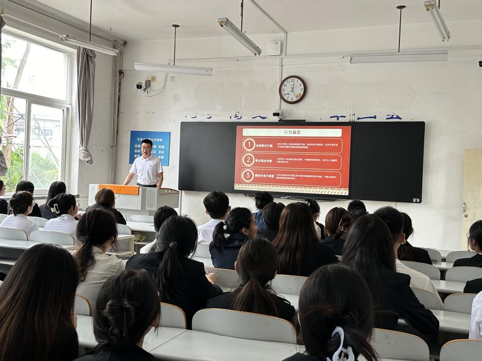 党课上,王晋清以自身经历为切入点,为在场师生带来一堂生动的党课。他结合当代青年的成长环境与时代需求,深入剖析端正入党动机的重要性,引导同学们思考入党初心,鼓励大家将个人理想融入党和国家的事业之中。同时,围绕当代青年肩负的责任与使命详细阐述了党员在学习、生活和未来工作中应有的担当与作为,让大家对党员身份有了更深刻的认识。