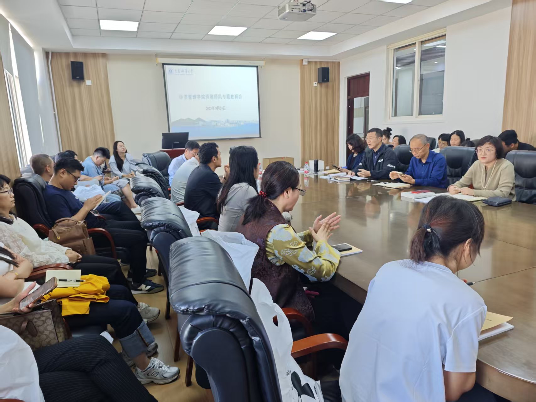 学深悟透方能行稳致远。2025年9月25日下午,学院召开专题会议,把《新时代高校教师职业行为十项准则》学习作为核心任务,通过专题解读引导教师逐字领会其核心精神,进一步明确师德师风正面规范和负面清单,明晰科研经费领域相关规范,让“教书先育人、育人先正己”的理念入脑入心,切实增强教师的纪律意识与底线思维。